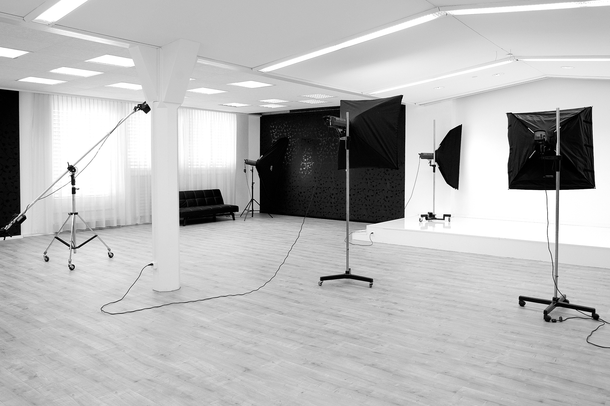 Das Studio verfügt über eine grosszügige Fläche von 180 m2 und einer idealen Raumhöhe von 3 m und überzeugt durch seine erstklassige Ausstattung. So ist es perfekt geeignet für zahlreiche Fotoprojekte. Aufgrund der vielseitigen Hintergründe ist es unter anderem auch ideal für unterschiedliche Formen der Portrait-Fotografie.